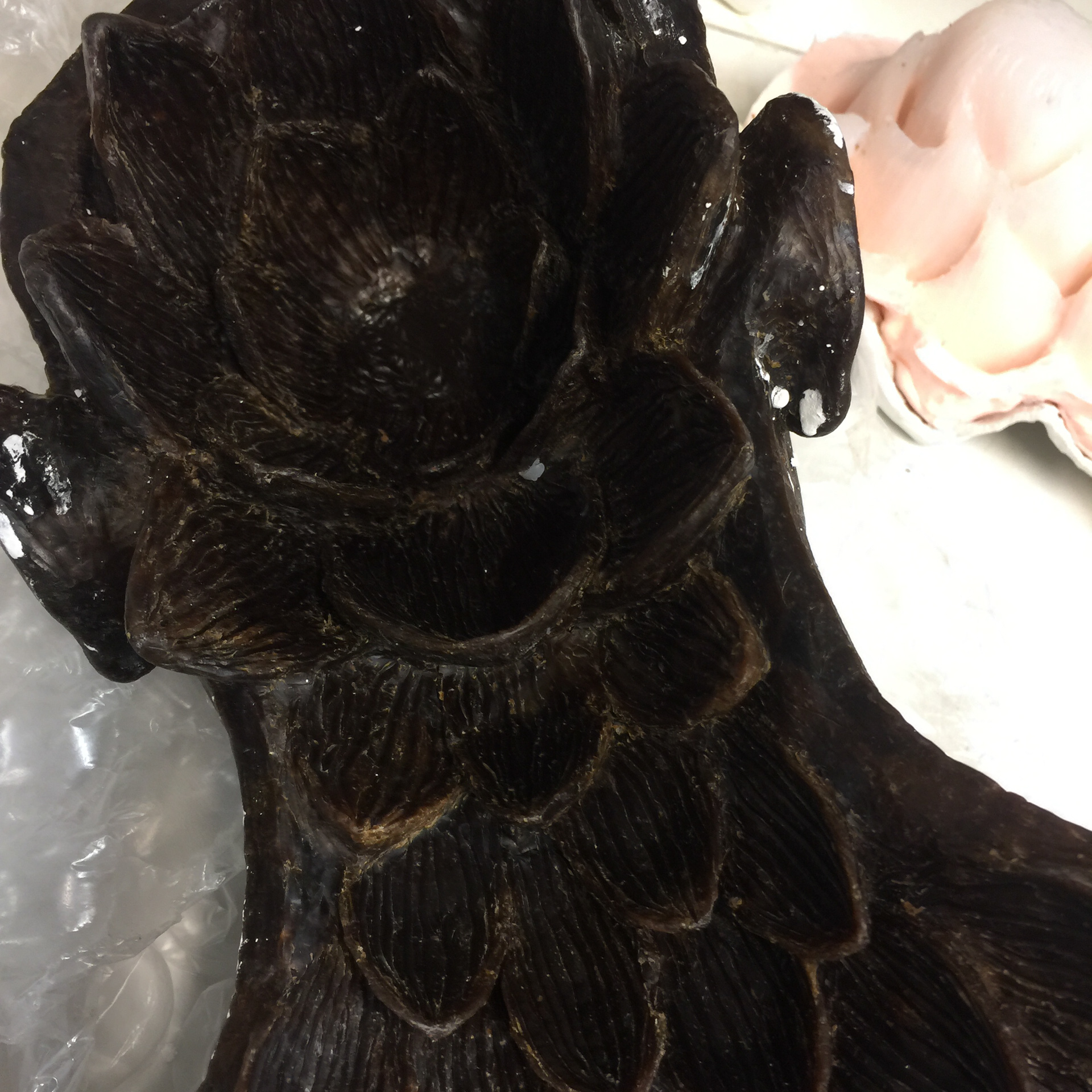 Each of the three busts acts as the vitrine to hold a scene sculpted in its shell. This work is the continuation of my investigation into the power dynamics in relationships, metaphorically showing the mind in states of depression, mania, and balance.