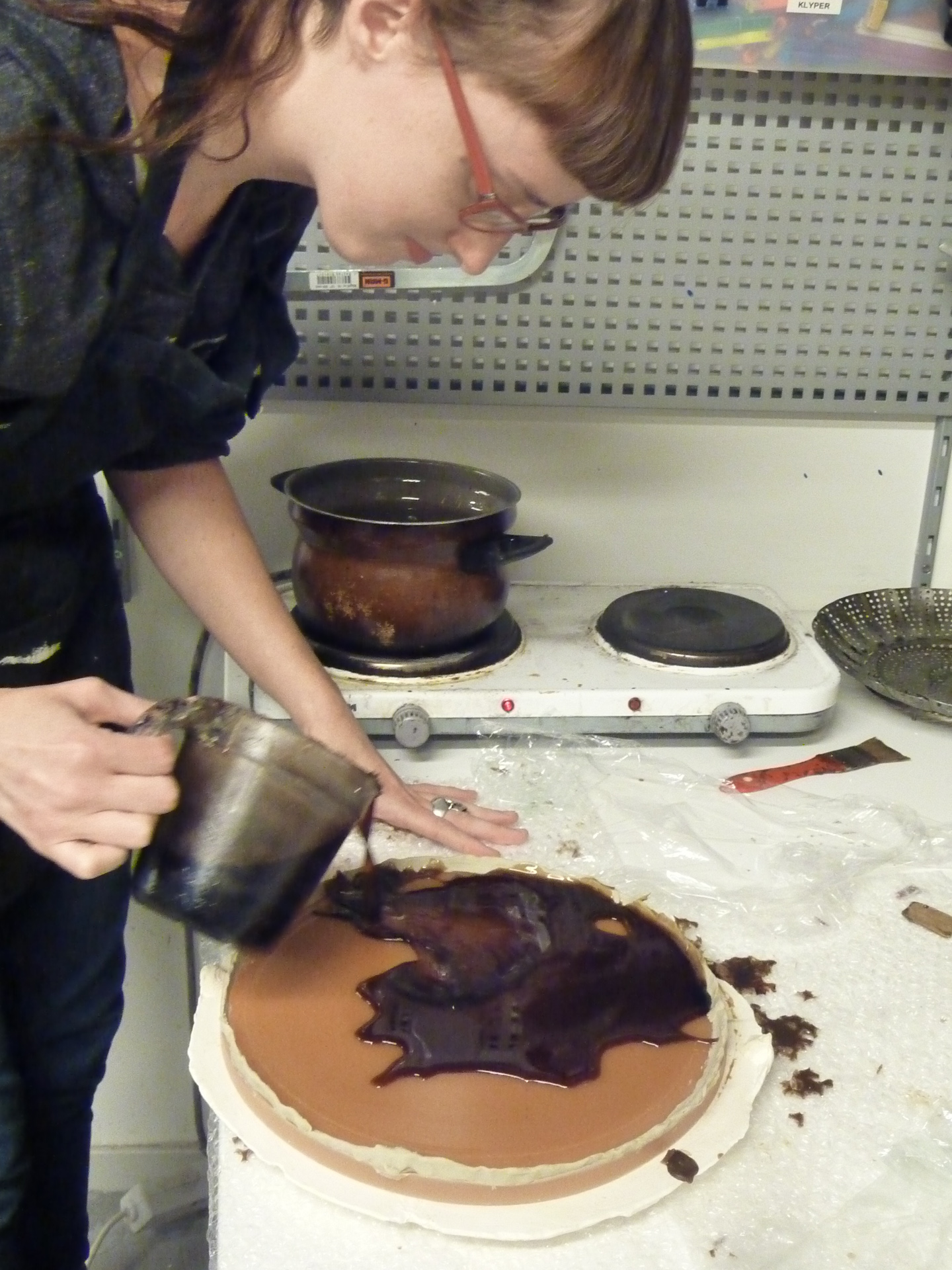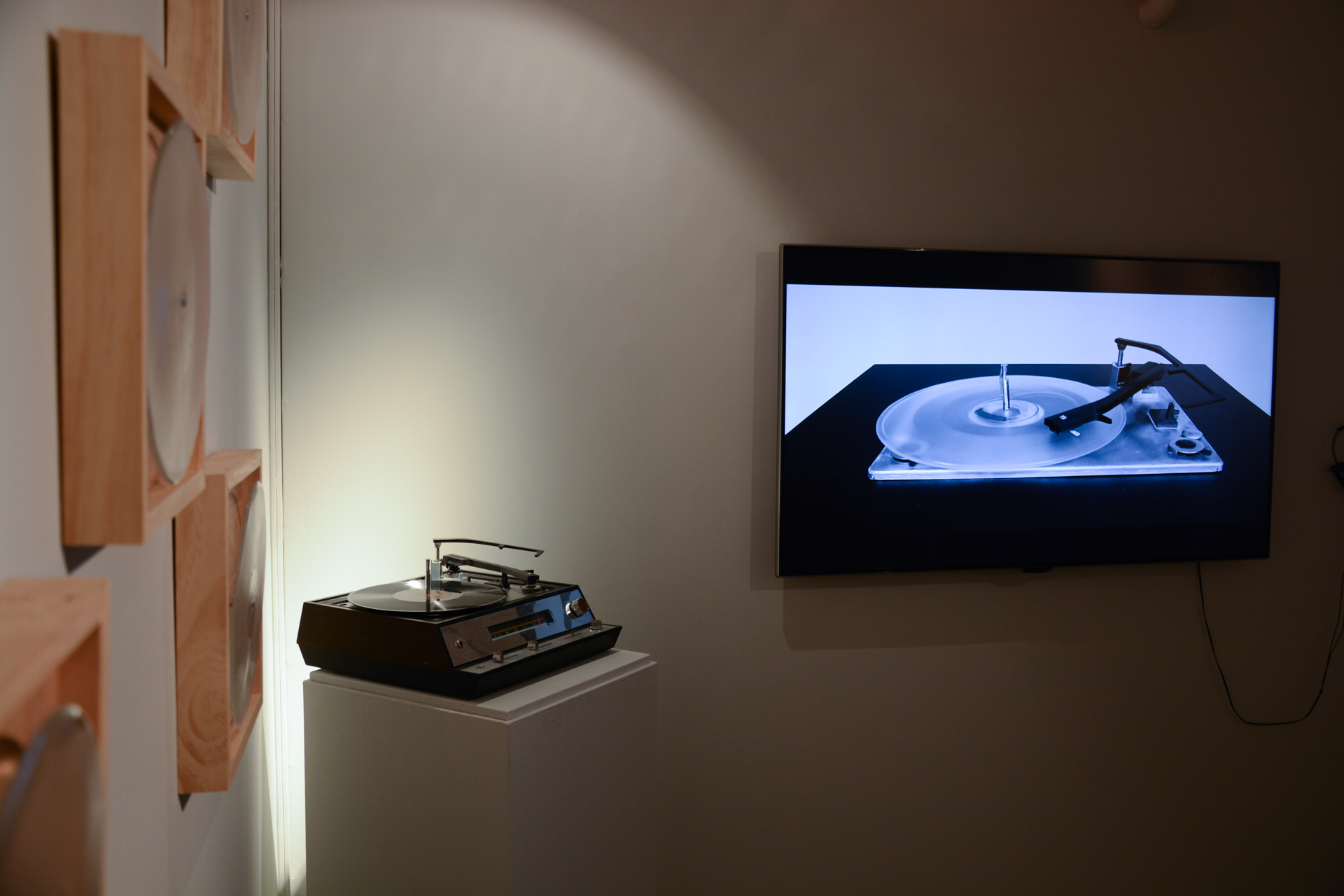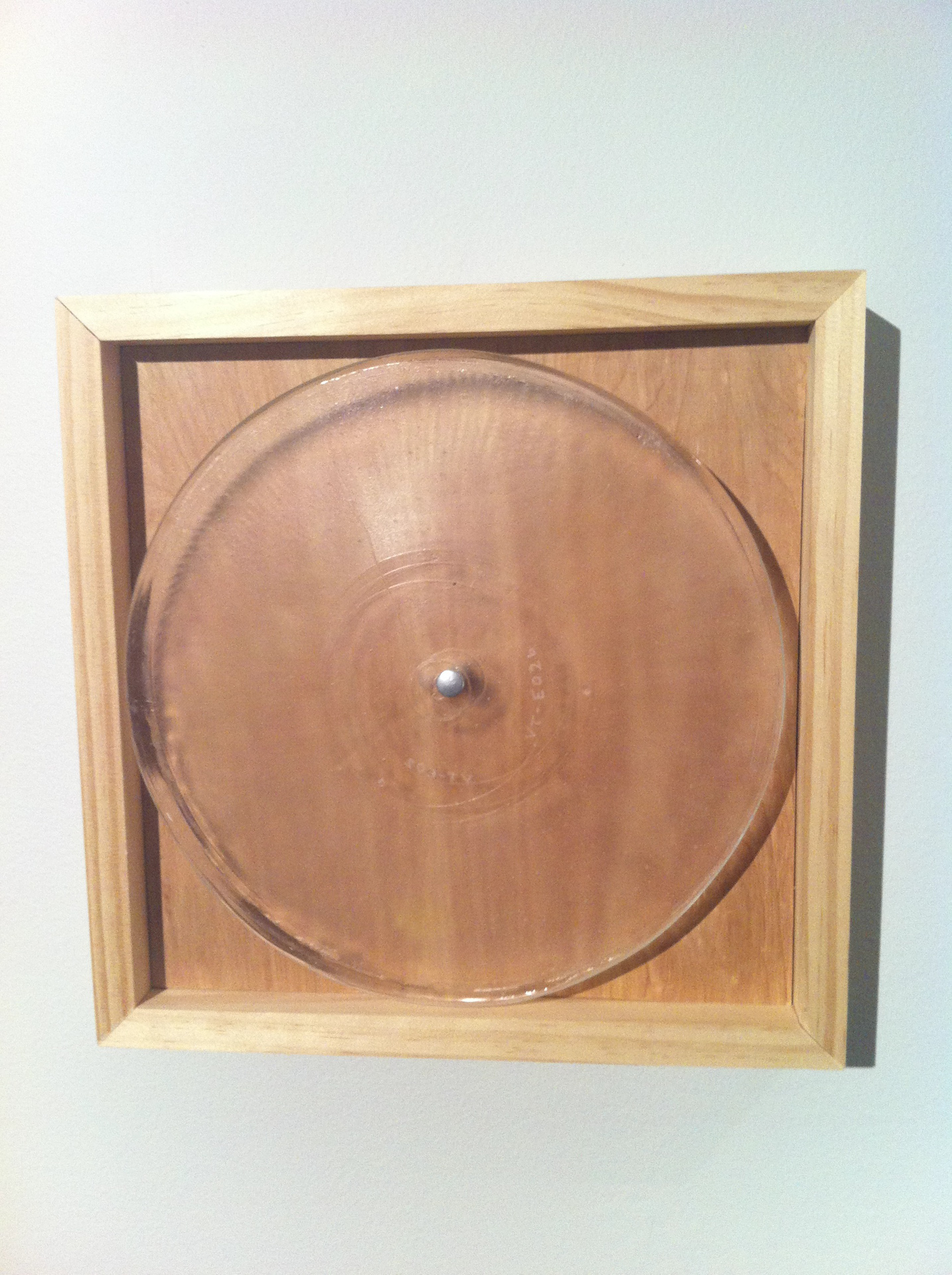 “In my work I wish to capture the ephemeral nature of our digital world and convey a sense of loss for all things that fail to make the digital migration and are then lost in the march of obsolescence. My series of glitch prints on plexi-glass cull source imagery from the Library of Congress Digital Collections, an online resource of digitized information. Each image was originally a film negative, but has been translated into a digital file to “preserve” it for future generations. I used a program to intentionally “glitch” these images, showing a sudden breakdown in data. These prints represent the instability of digital resources as opposed to their analog counterparts. My series of glass “Vitreo-Tone” recordings represent analog media: tangible and bulky, yet more stable over time. When stored safely these recordings could be played by future generations, who will hear the information fade each time it is played. Not only does the casting process corrupt the data on the recordings, but each time the grooves are traced by the phonograph needle, the music wears away further. Through the reproduction of media, degradation is inherent in these works. As we document our lives and events today, this information becomes part of the greater digital landscape. While it is more accessible as part of a global web, it is also more prone to sudden loss. These types of media leave behind no real physical object and are only digital copies of copies.”