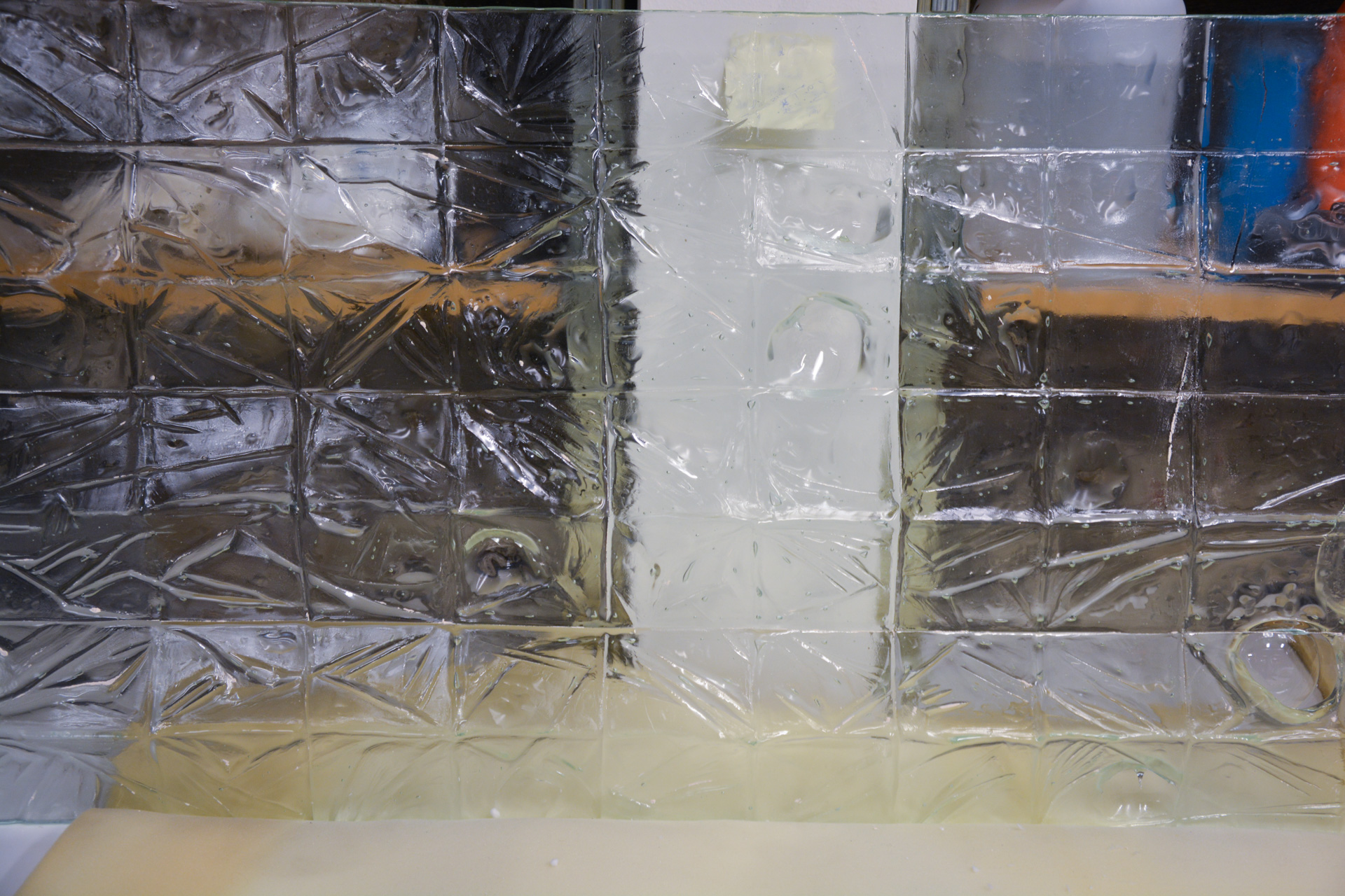 These works were later shown in the exhibition Elsewhere Revisited at Østfold Kunstsenter, Norway in 2014. During her residency she was researching aspects of fragility, memory and transience and exploring some of the boundaries of glass art, not primarily looking into what glass art is, as much as what it can also be. Issues of loss and the echo of silence are primary concerns that she addressed in her work, or as it states on the packaging of the rescue blanket that forms an important part of the project: “To keep the patient from contact with cold surfaces…”