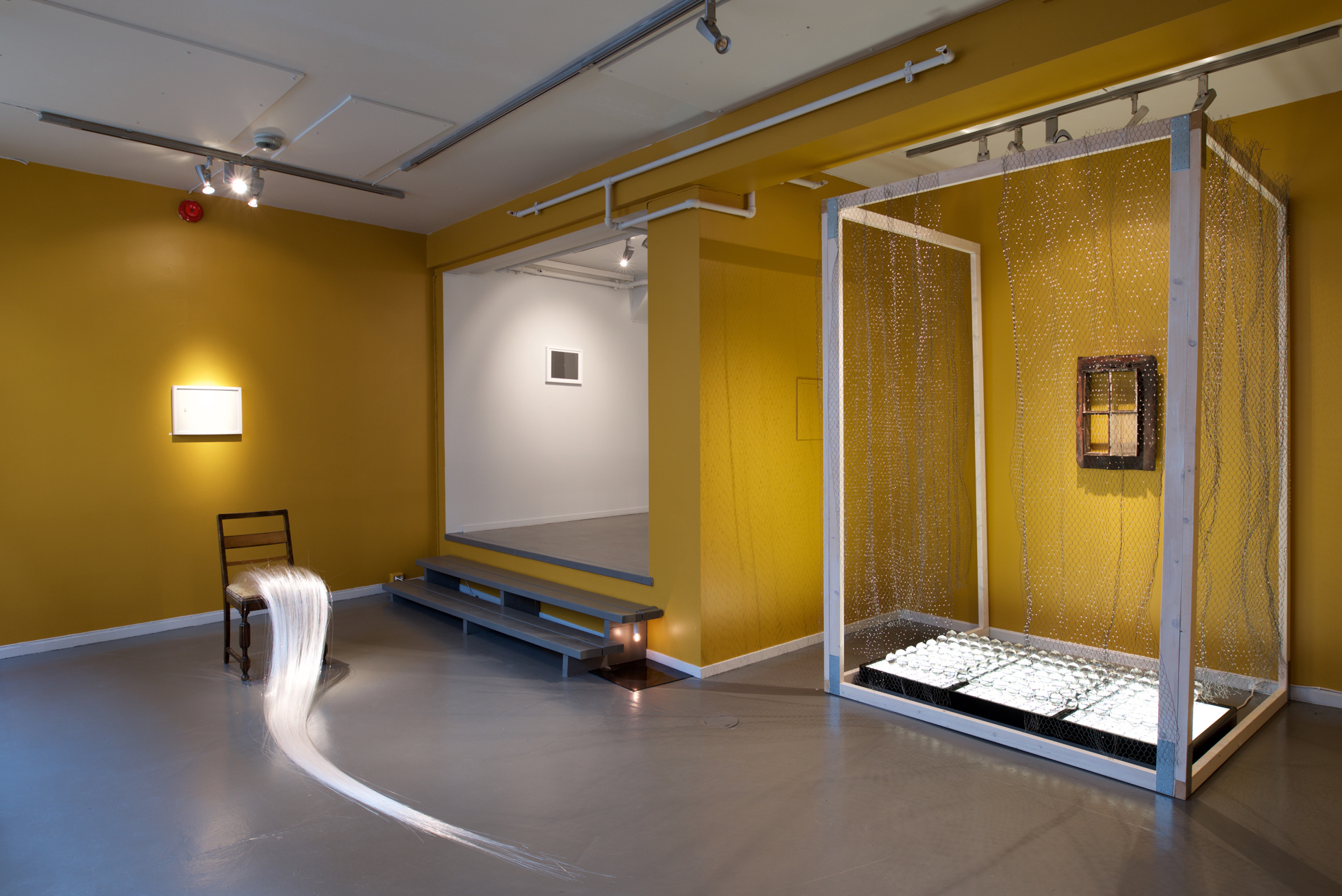 The exhibition presents a comforting and discomforting domestic-like environment, in which objects, drawings, videos, and installations reflect the instabilities and insecurities of our existence. Our day to day lives, often, are dominated by routine, schedules, and planning – an effort to theoretically control and ensure the future. Our ability to think about the future directs our actions within the present, and thus we operate on suppositions. It creates a paradox, however, between this effort, and the potential of inducing a self-inflicted captivity. While the home operates as a place of protection and comfortability, it becomes a place in which we enslave ourselves through the effort to obtain, maintain, and care for it – through hard work, sacrifice, upkeep, cleaning, and decorating. It is a type of trap in which we contain our selves, our belongings, and our lives.