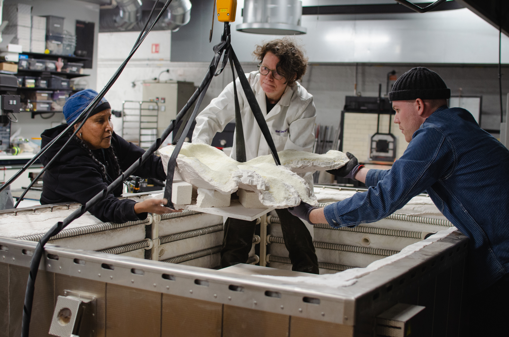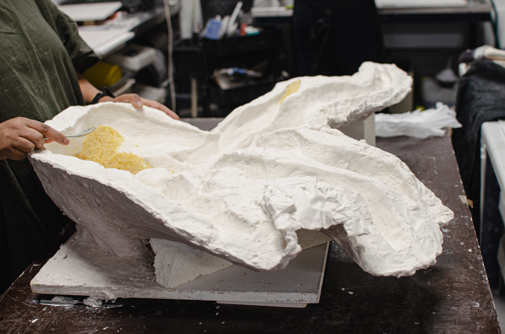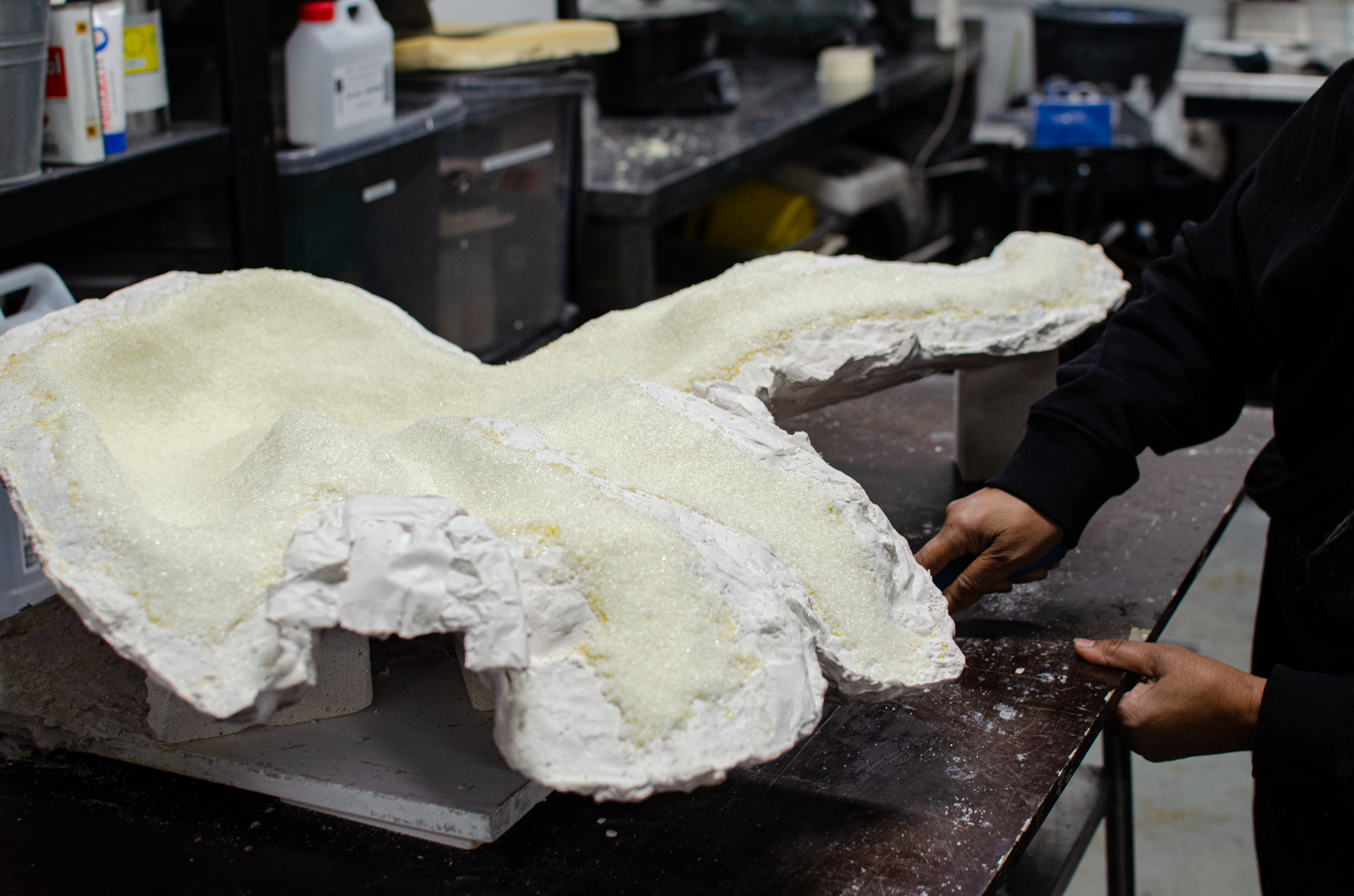 The glass components made in S12 were abstract shapes, symbolizing a womb and fallopian tubes, and will incorporate LED lighting that allows for slow dimming and bright flashes, creating a sense of motion. This was Mekdes´s first time working with glass.