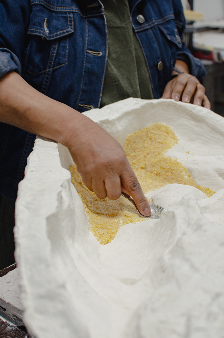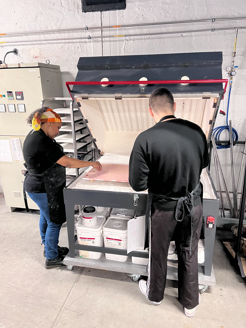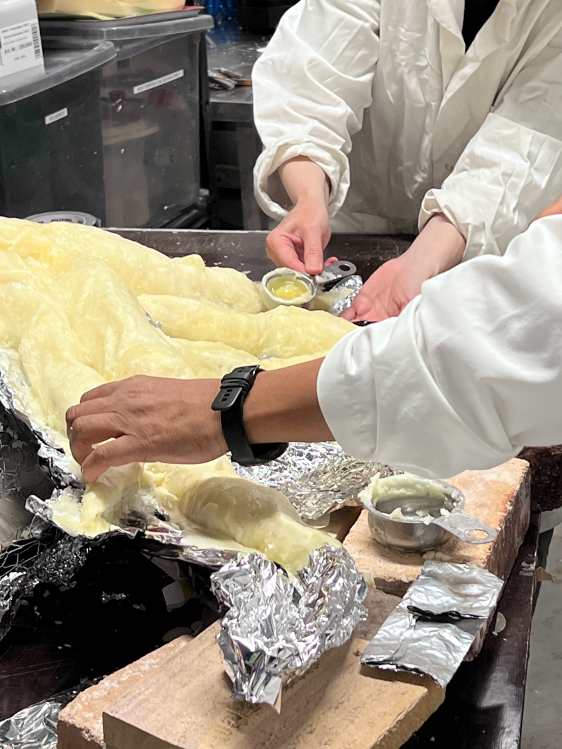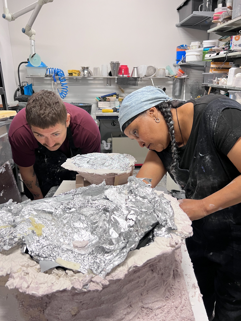 The glass components made in S12 were abstract shapes, symbolizing a womb and fallopian tubes, and will incorporate LED lighting that allows for slow dimming and bright flashes, creating a sense of motion. This was Mekdes´s first time working with glass.