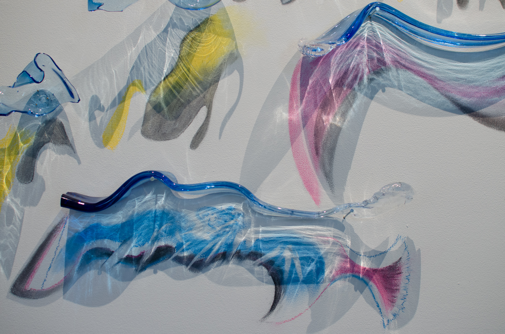 In September 2023 Peter Sutton was an artist in residence in S12, where he made a site specific wall piece for the exhibition, Behold. In this work titled “Mountain” his background from painting and glass merges together, as he is playing with light and shadows by drawing his own shadows underneath the glass objects, creating a unique and captivating visual experience.