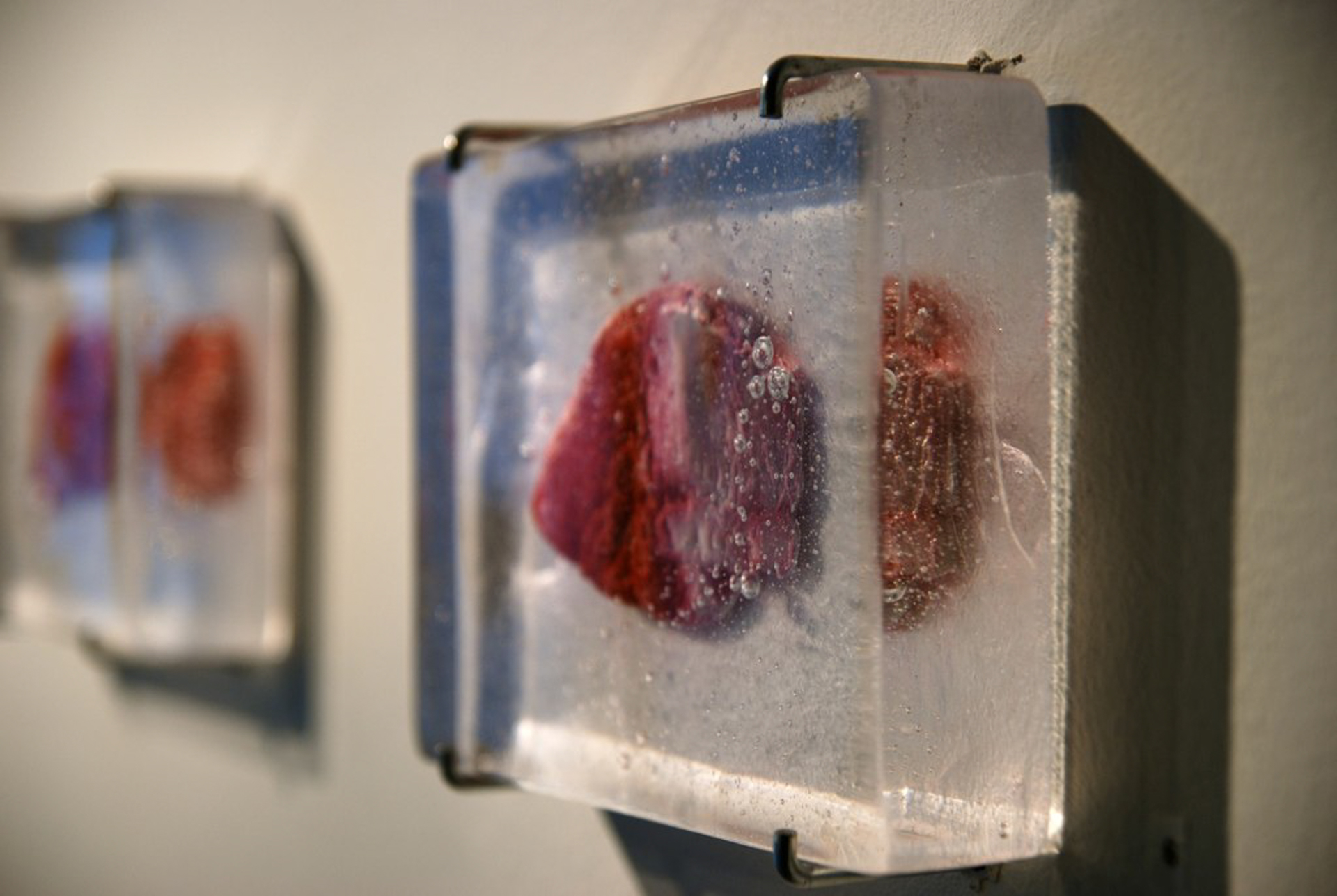 Serien Flesh består av kunstige kjøttstykker, manipulert og fargeretusjert for å skape inntrykk av å være evig bevart i transparente rektangler av glass. Videoinstallasjonen Make-up spiller på den kosmetiske behandlingen familier gjerne gir sine avdøde før begravelsen. Begge deler parodier på menneskets fåfengte forsøk på å fjerne tidens uunngåelige spor.
