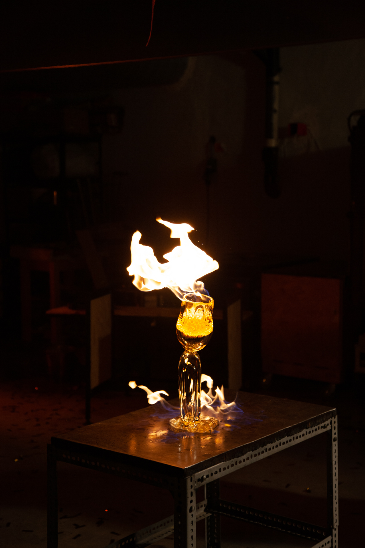 NINA WESTMAN arbeider interdisiplinært, og krysser grensen mellom kunsthåndverk og performancekunst. Med bakgrunn fra teater, som skuespiller og scenograf kombinerer hun denne ferdigheten med ferdighetene til en glassblåser. Hun ser på glass som et kommunikativt materiale, et materiale som vi alle kjenner, bruker og har visse forventninger til; skjørt og skarpt og ofte skapt for å drikke av. I alle sine prosjekter arbeider hun med disse forventningene og forsøker å snu dem. Å stille spørsmål ved glassmakertradisjoner samtidig som hun hyller de er hennes søken og lyst. Hvorfor må vi gå i de samme gamle fotsporene, når man kan finne nye spor?