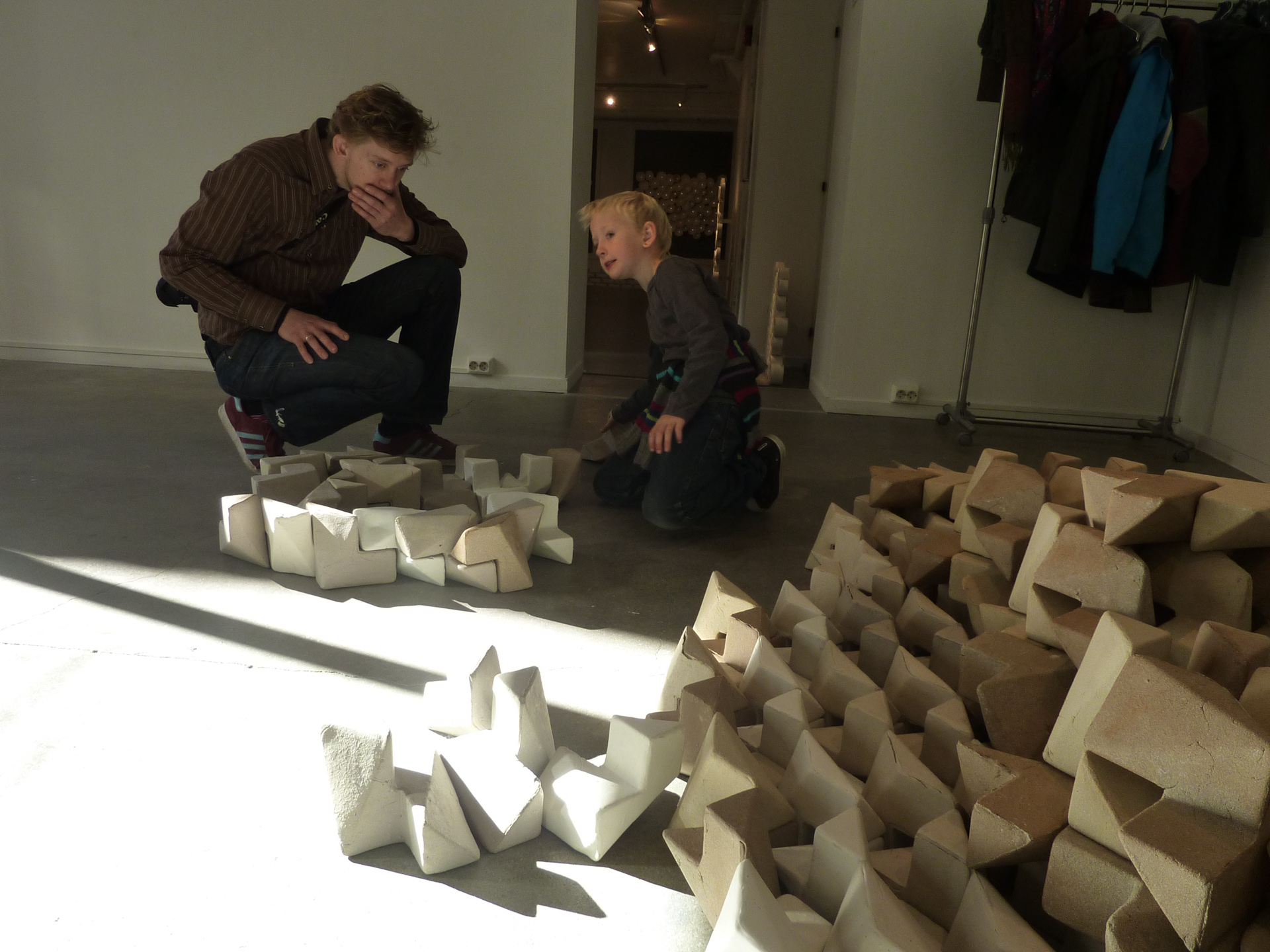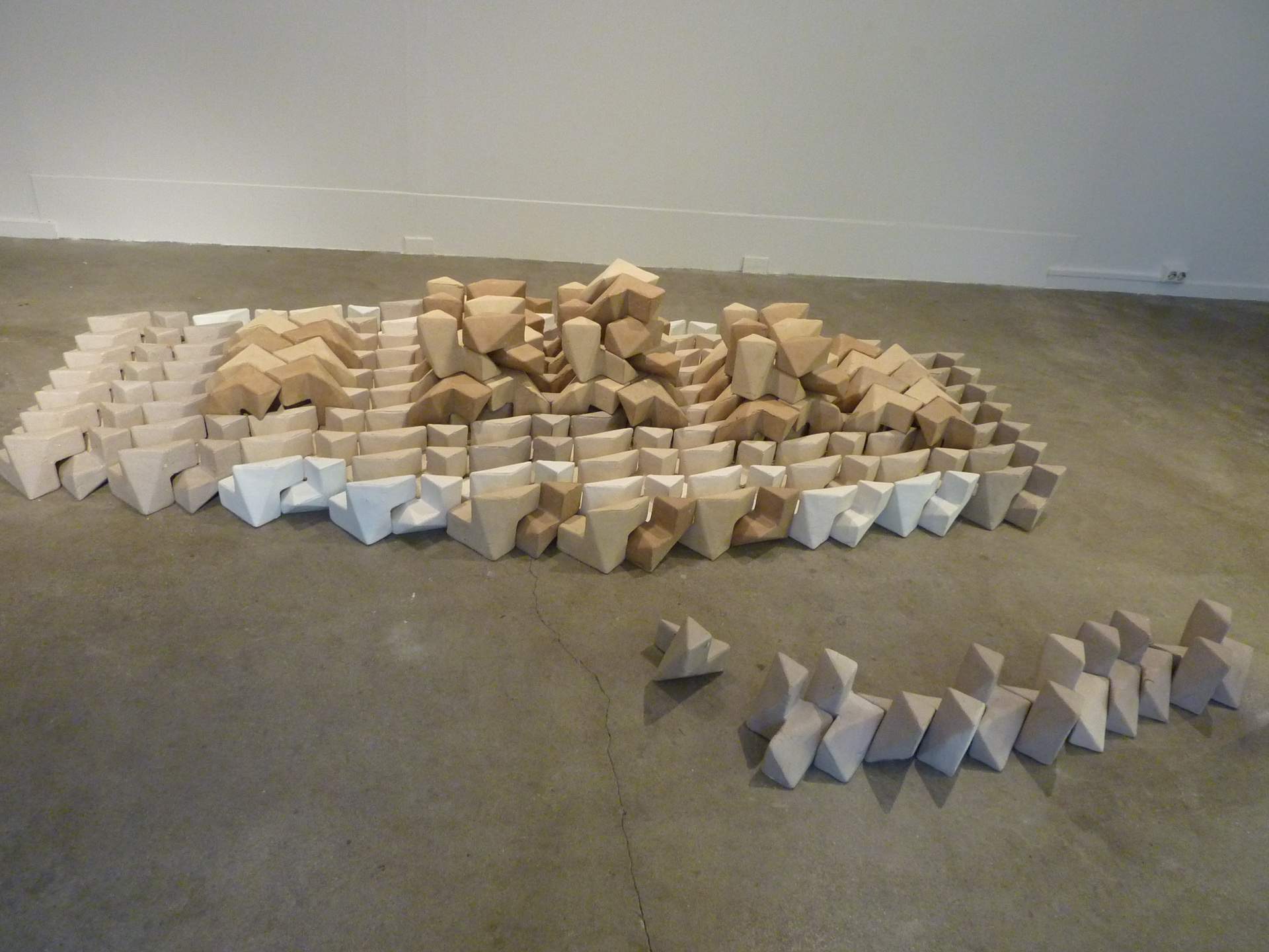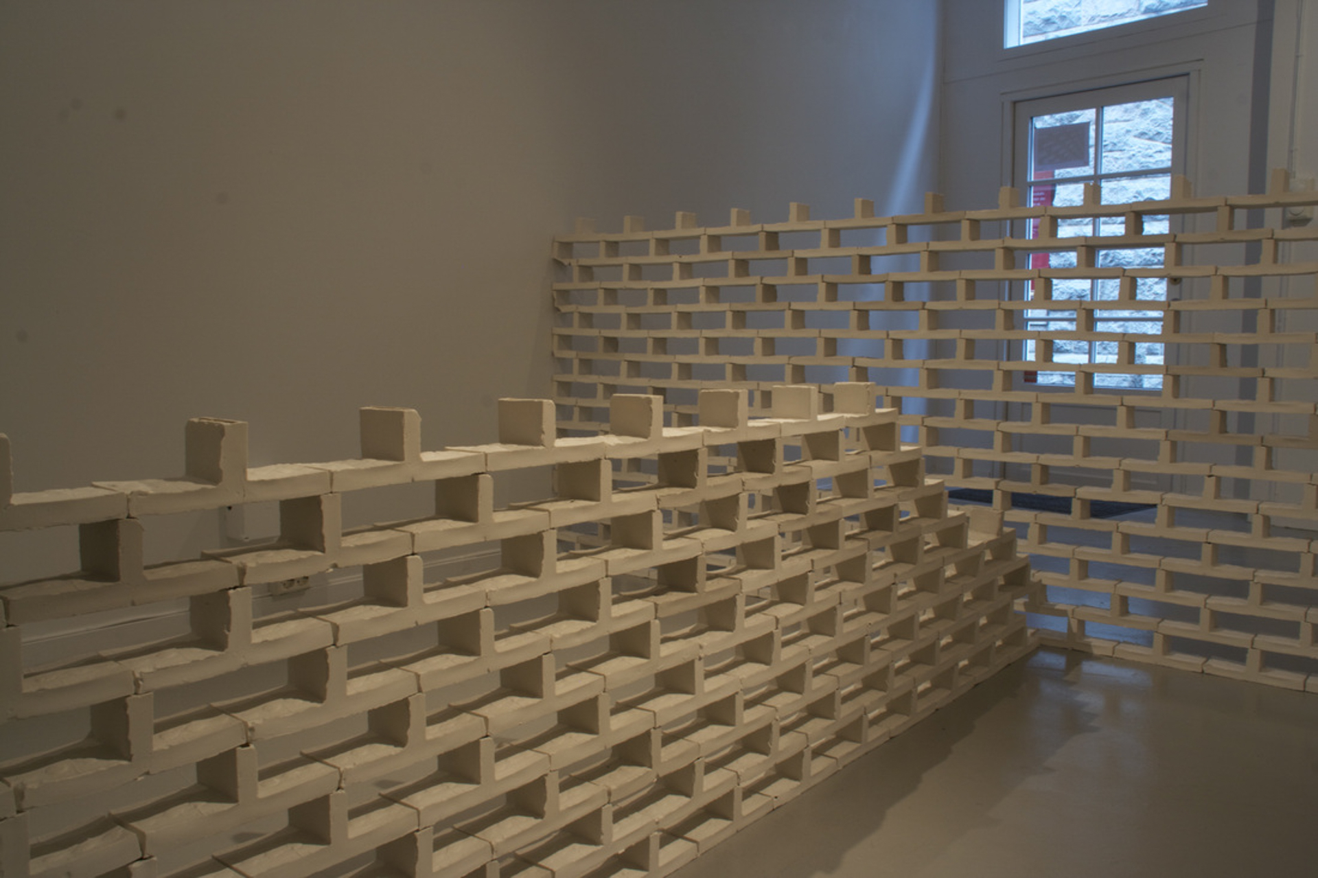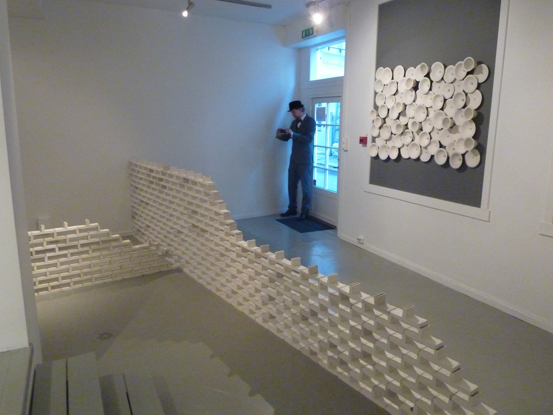 I arbeidet, «Sammenkoblinger», som danner et hovedverk for utstillingen, har Woll Godal trukket frem den bakenforliggende strukturen i en murvegg, nemlig fugene som holder det hele sammen. Ved å trekke frem konstruksjonsmaterialet som ornament ønsker han å studere ornamentets potensial for å danne rytmiske forløp og nye bevegelsesmønstre.