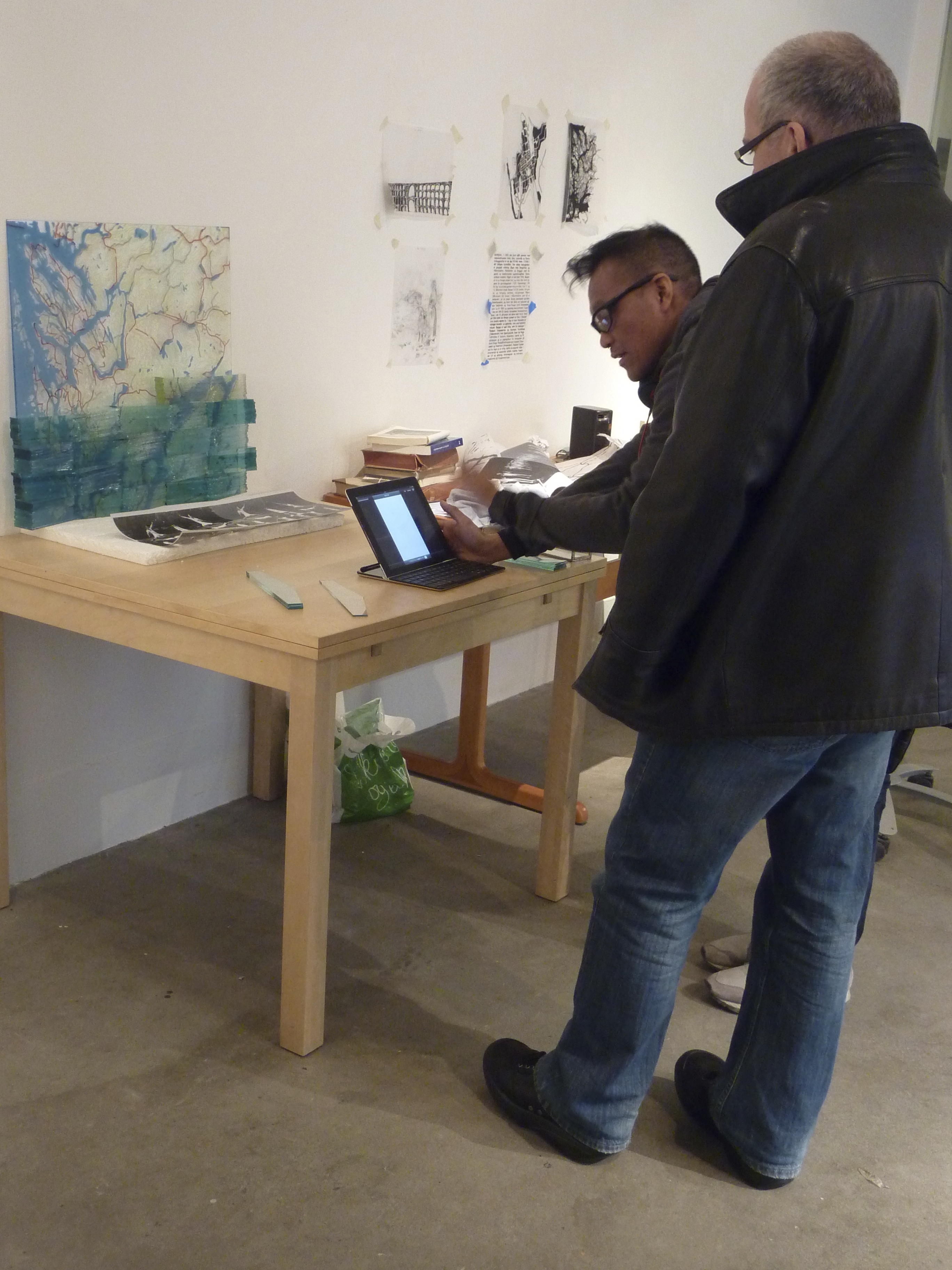 Stine Bidstrup and Jeffrey Sarmiento are occupying S12 – in their capacity as Artists in Residence. 60 years old weatherbeaten glass is being used, molds of different sizes and shapes are made, even stones are being blown into, wax, maps and more all over the place – welcome to S12 to follow the process !